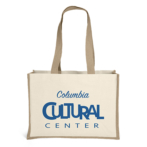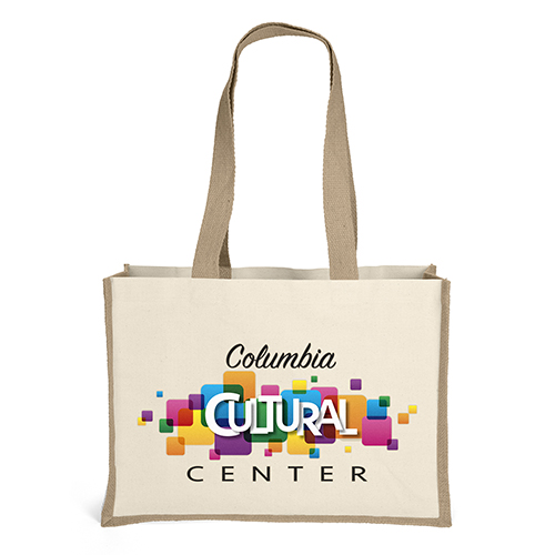 The Mimi Natural Tote combines durable 10-oz. cotton front and back panels with stylish natural-colored jute gussets and bottom. Interior gussets are laminated for added durability. Due to the natural character of cotton fabric, slight color variances will occur between bags.