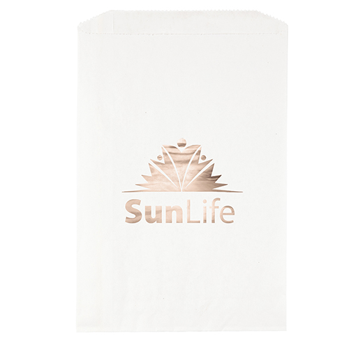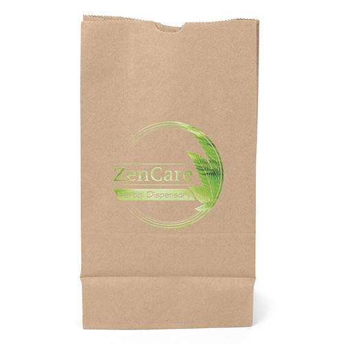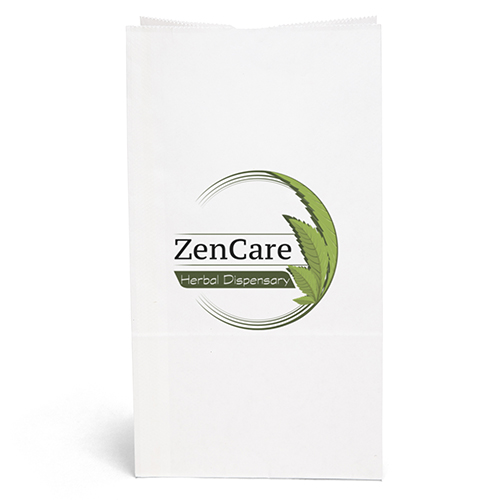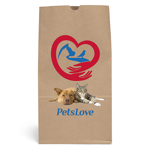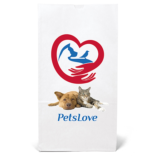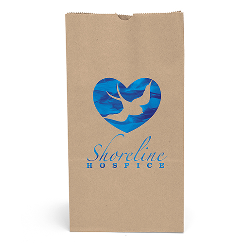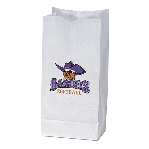 Durable white or brown kraft paper S.O.S. Bag features a side gusset and a serrated cut top. Brown kraft paper is made from 100% recycled paper with a minimum of 95% post-consumer content.