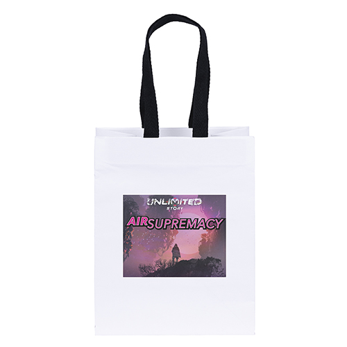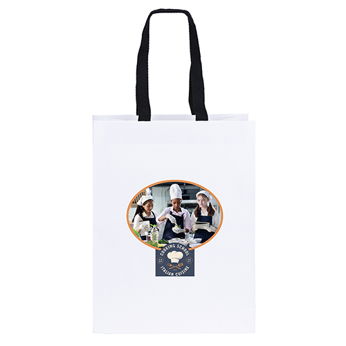 The Mia Boutique Die Cut Handle tote is a heavyweight matte-laminated bag that features fold-over die cut handles and a cardboard bottom insert.