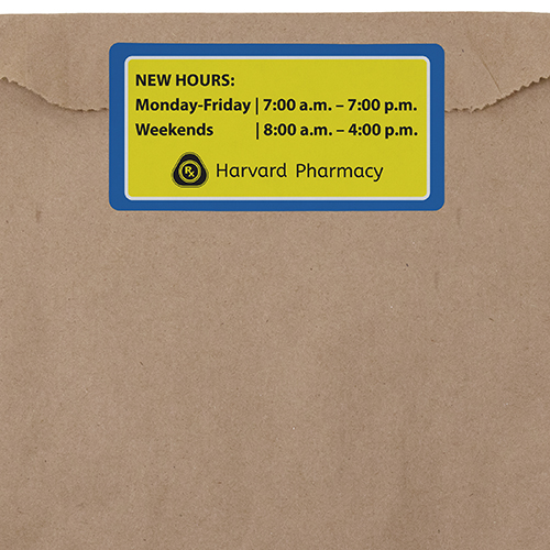 Full-Color adhesive labels can be customized and used to seal products or to provide information for meal delivery, cafeteria, personal protective equipment, and pharmacies.