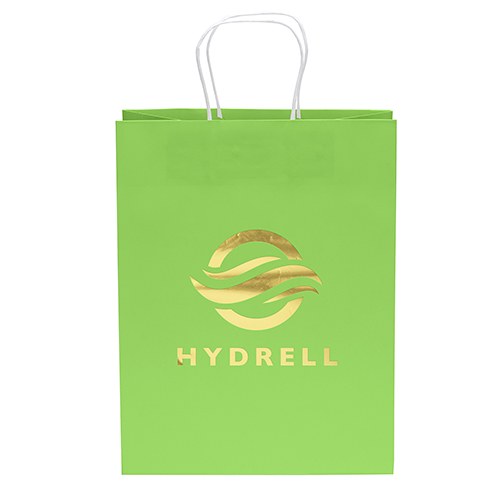 The Aubrie Gloss Shopper features a glossy paper finish and twisted kraft paper handles.