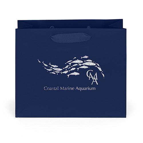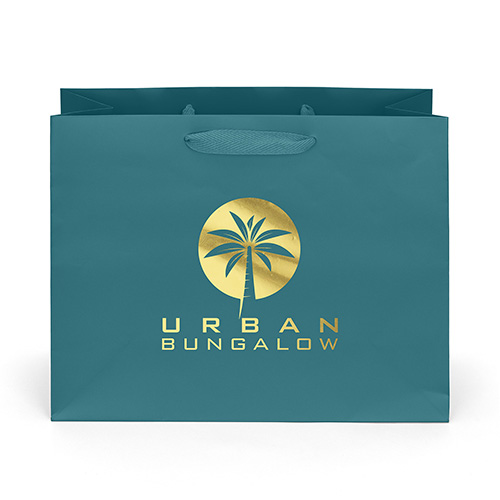 The Victoria Ribbon-Handle Matte Eurotote is made with matte-laminated paper, grosgrain ribbon handles, a reinforced fold-over top, and a cardboard bottom insert.
