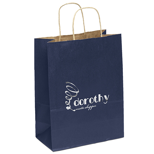 The affordable Dorothy Matte Shopper includes a serrated cut top and twisted paper handles. The bag is made from 100% recycled paper with a minimum of 60% recycled post-consumer content.