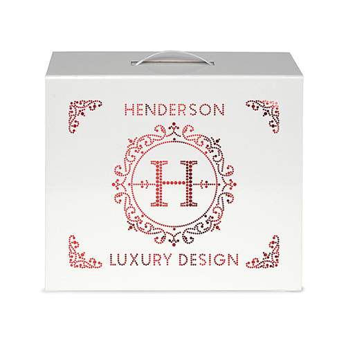 The Shelly Magnetic Closure Handle Box (12 1/4W x 10 ¼ x 4 1/2H) offers an elegant way to package retail products, high-end gifts, kits, and more. The box is made with ultra-sturdy paper board and features a magnetic flap closure that secures contents and creates a luxurious unboxing experience. The collapsible box folds flat for shipping and storage. The Shelly Box features a white plastic carrying handle and is available in gloss white. Foil Print or Sparkle imprinting is available on the top lid