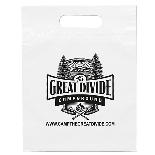 The 16W x 13H Digital Full Color Die Cut Bag is made with 2.0 mil plastic and non-reinforced die cut handles. The Digital Full Color print process showcases artwork with crisp colors, a generous imprint area, and exceptional clarity for small fonts, fine lines, and details.