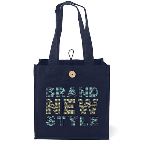 The Aurora Cotton Tote is made with durable 10-oz. cotton and features cotton twill handles and a wooden button with loop closure. Due to the natural character of cotton fabric, slight color variances will occur between bags.