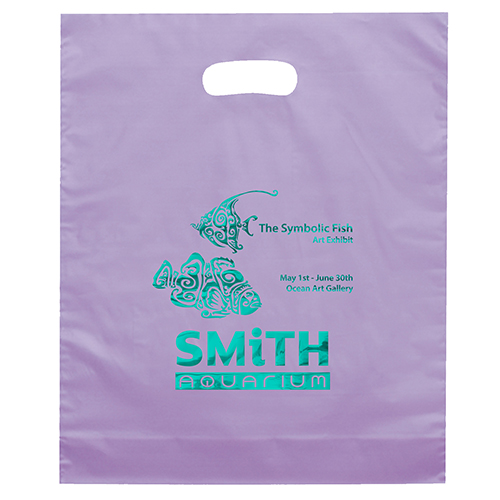 The 15W x 18H Digital Full Color Die Cut Bag is made with 2.0 mil plastic and non-reinforced die cut handles. The Digital Full Color print process showcases artwork with crisp colors, a generous imprint area, and exceptional clarity for small fonts, fine lines, and details.