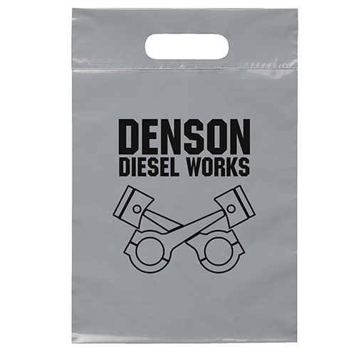 The 10W x 15H Digital Full Color Die Cut Bag is made with 2.0 mil plastic and has non-reinforced die cut handles. The Digital Full Color print process showcases artwork with crisp colors, a generous imprint area, and exceptional clarity for small fonts, fine lines, and details.